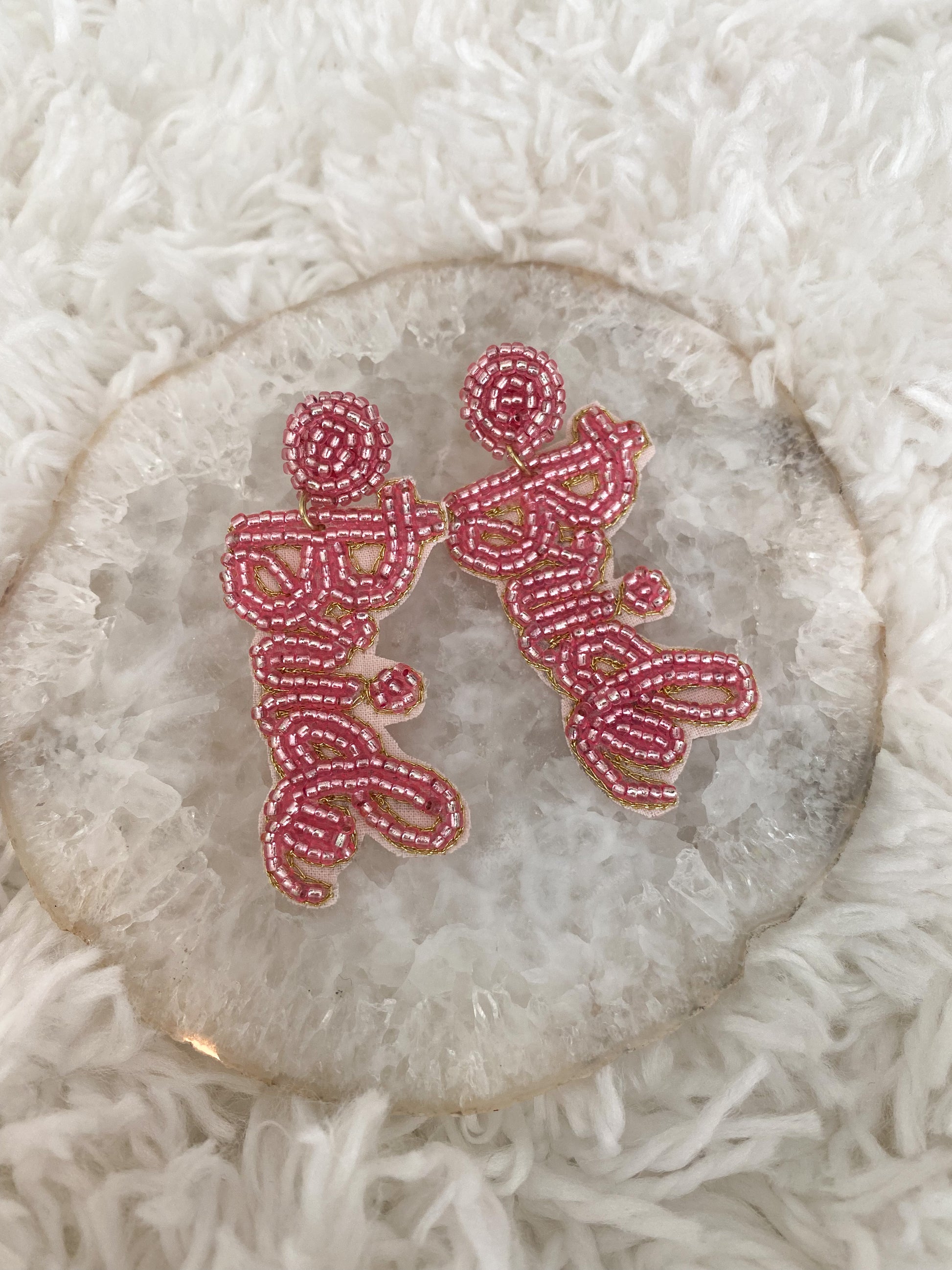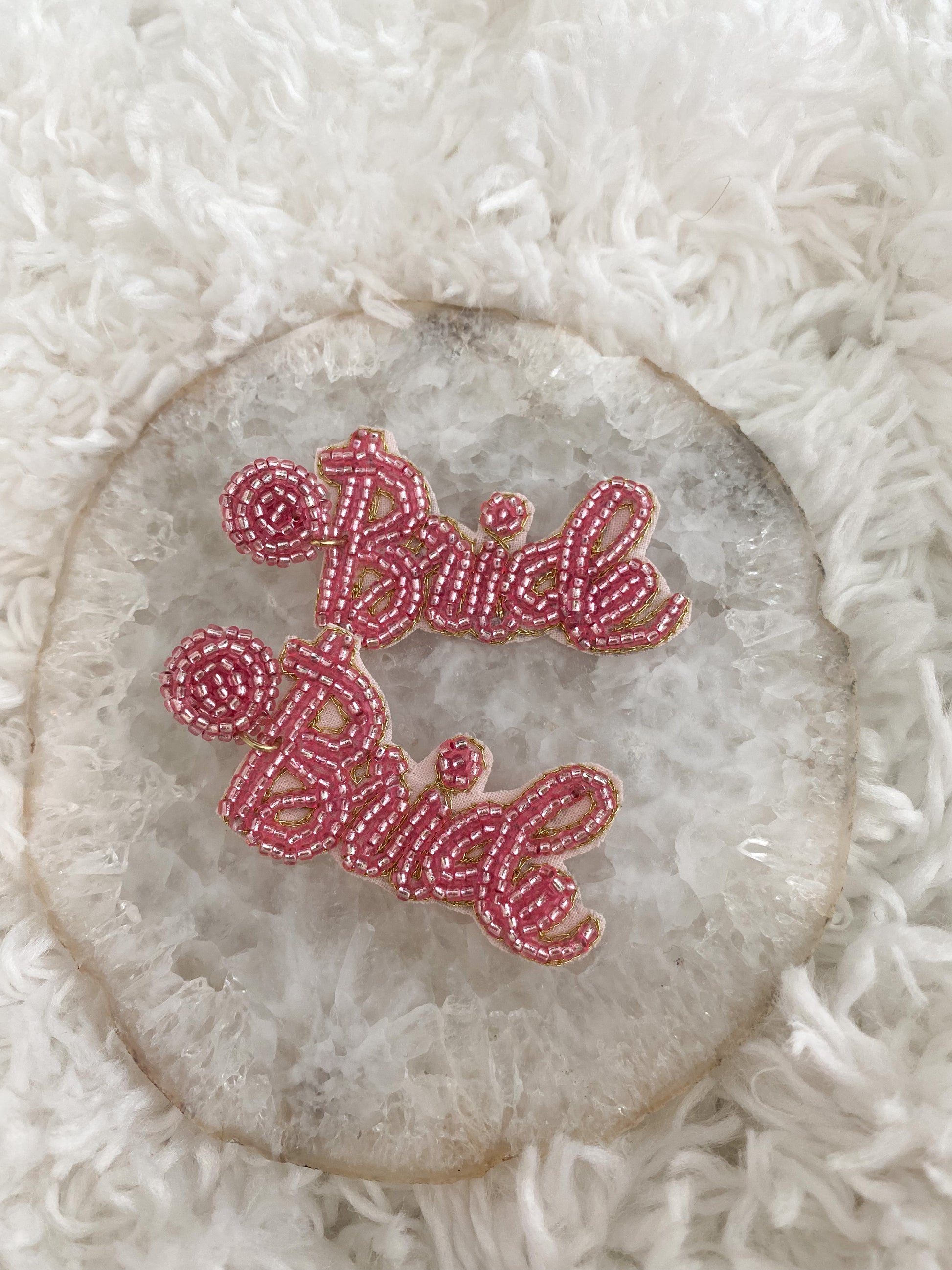 How fabulous would these pink Bride earrings look with a white dress? Did someone say bachelorette party?!