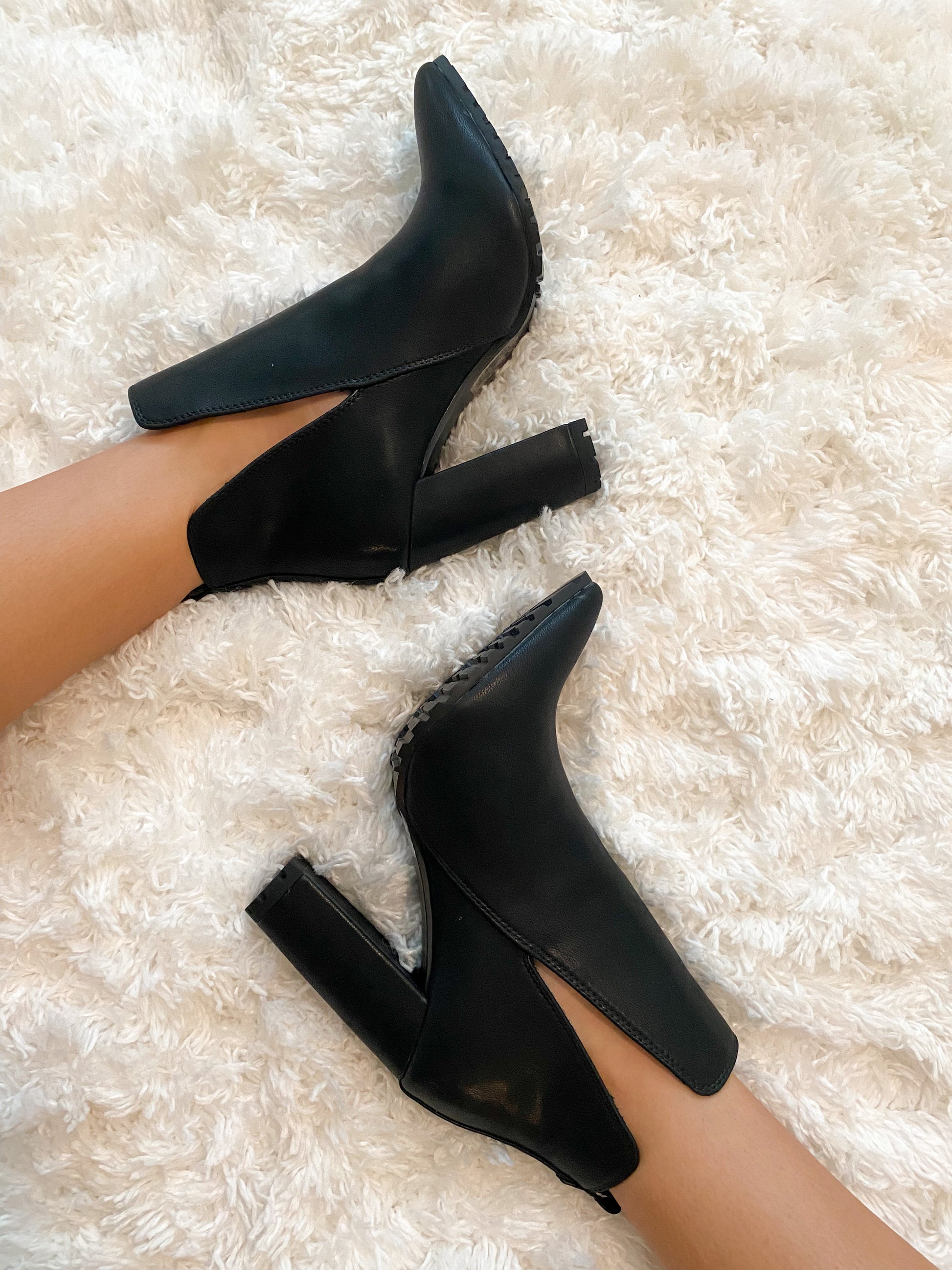 Fierce black booties with a slit detail to elongate the look of your legs! Runs true to size!
