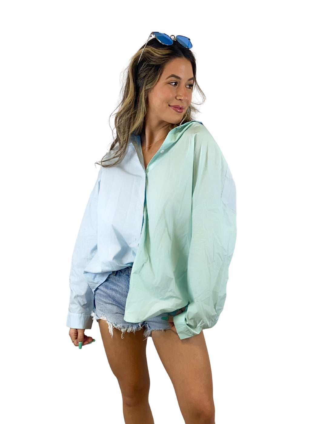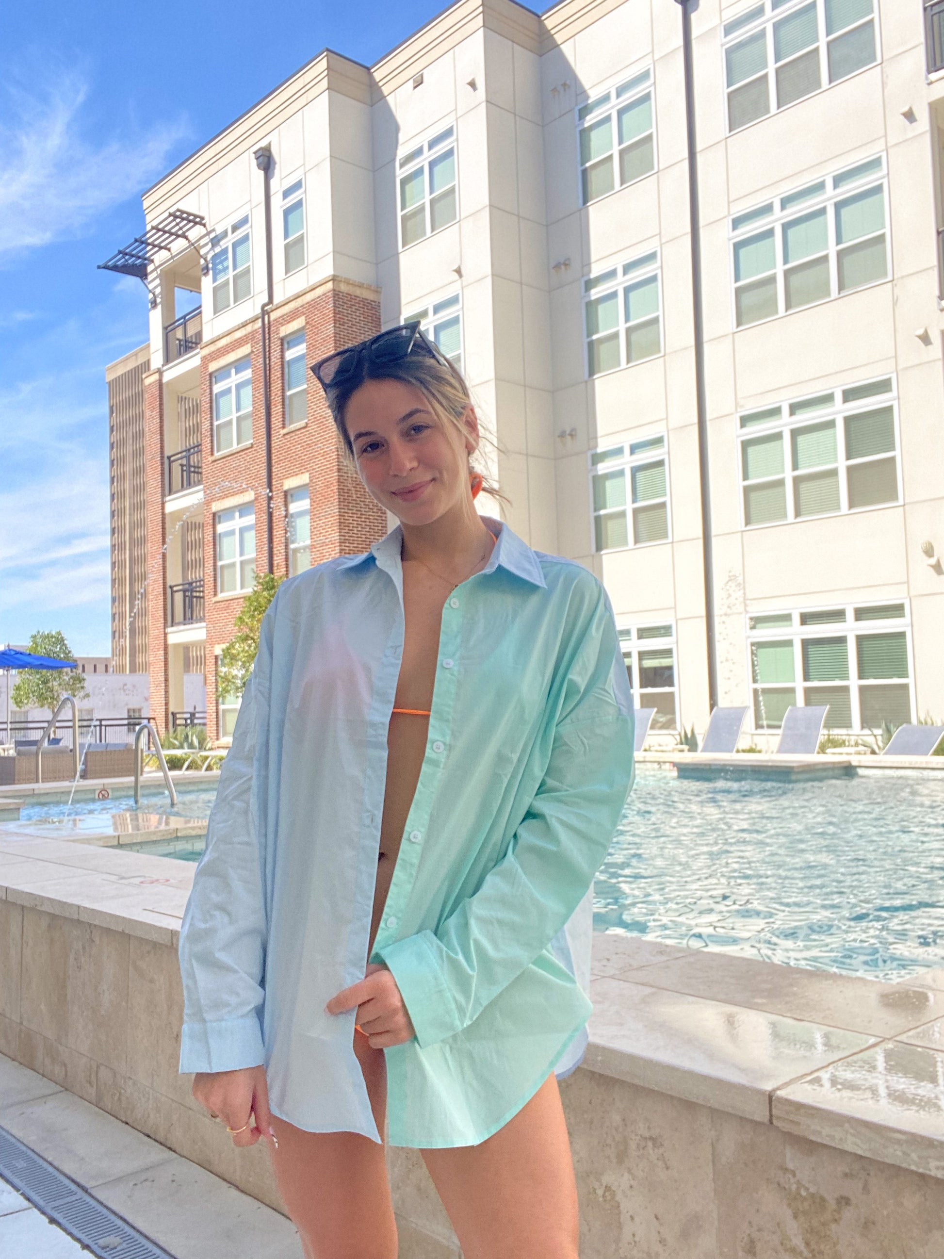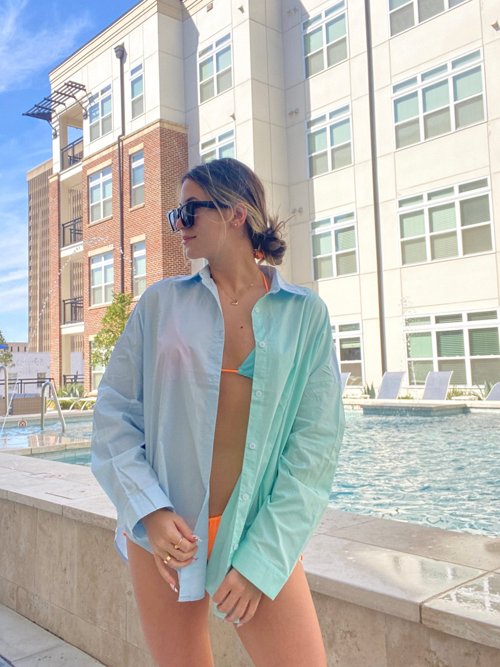 Our Minty Blue button up is the perfect piece for the summer, and so versatile! Wear it with some jean shorts, layer it over a tank, or our personal favorite- a bikini coverup!!
