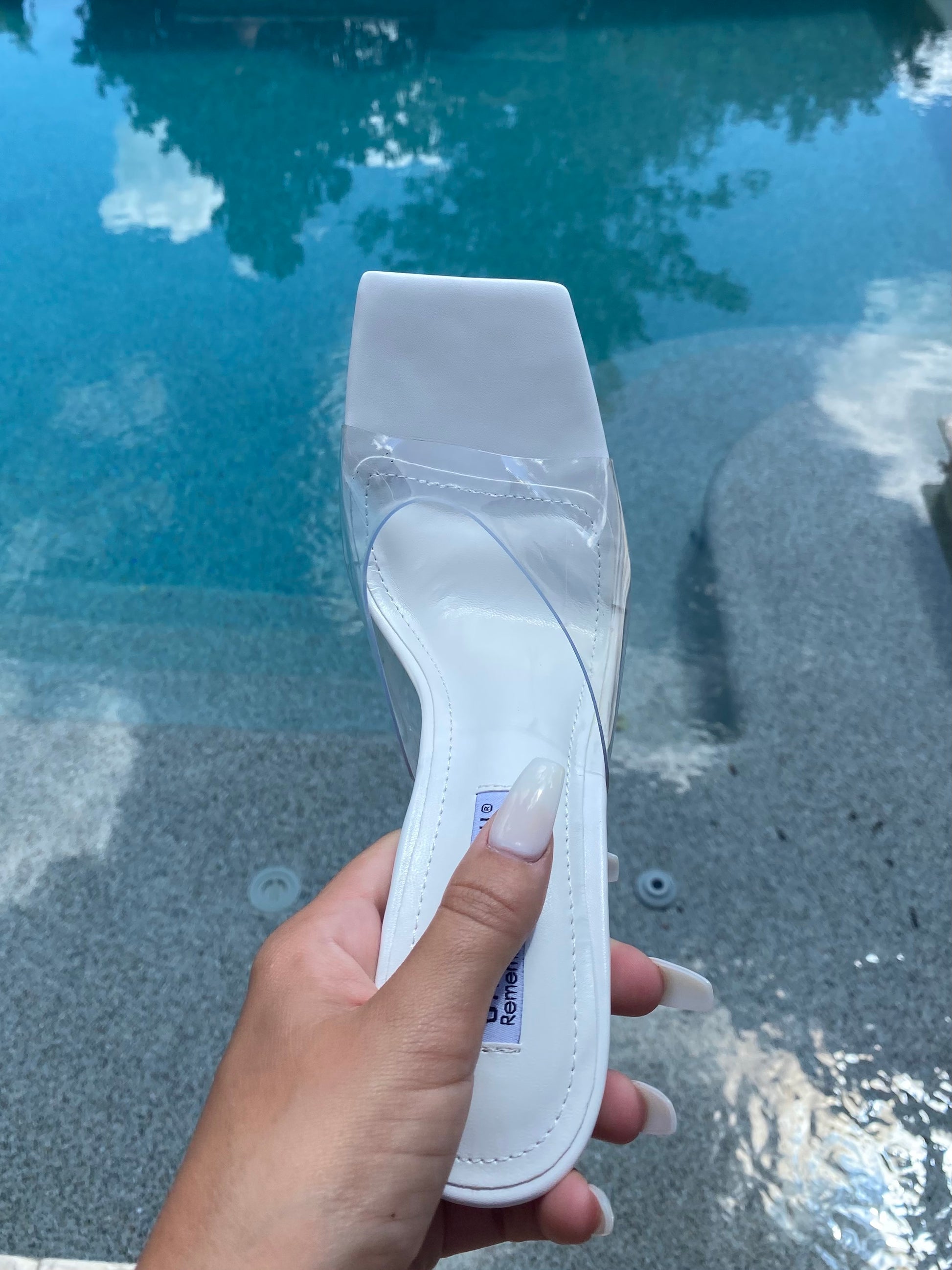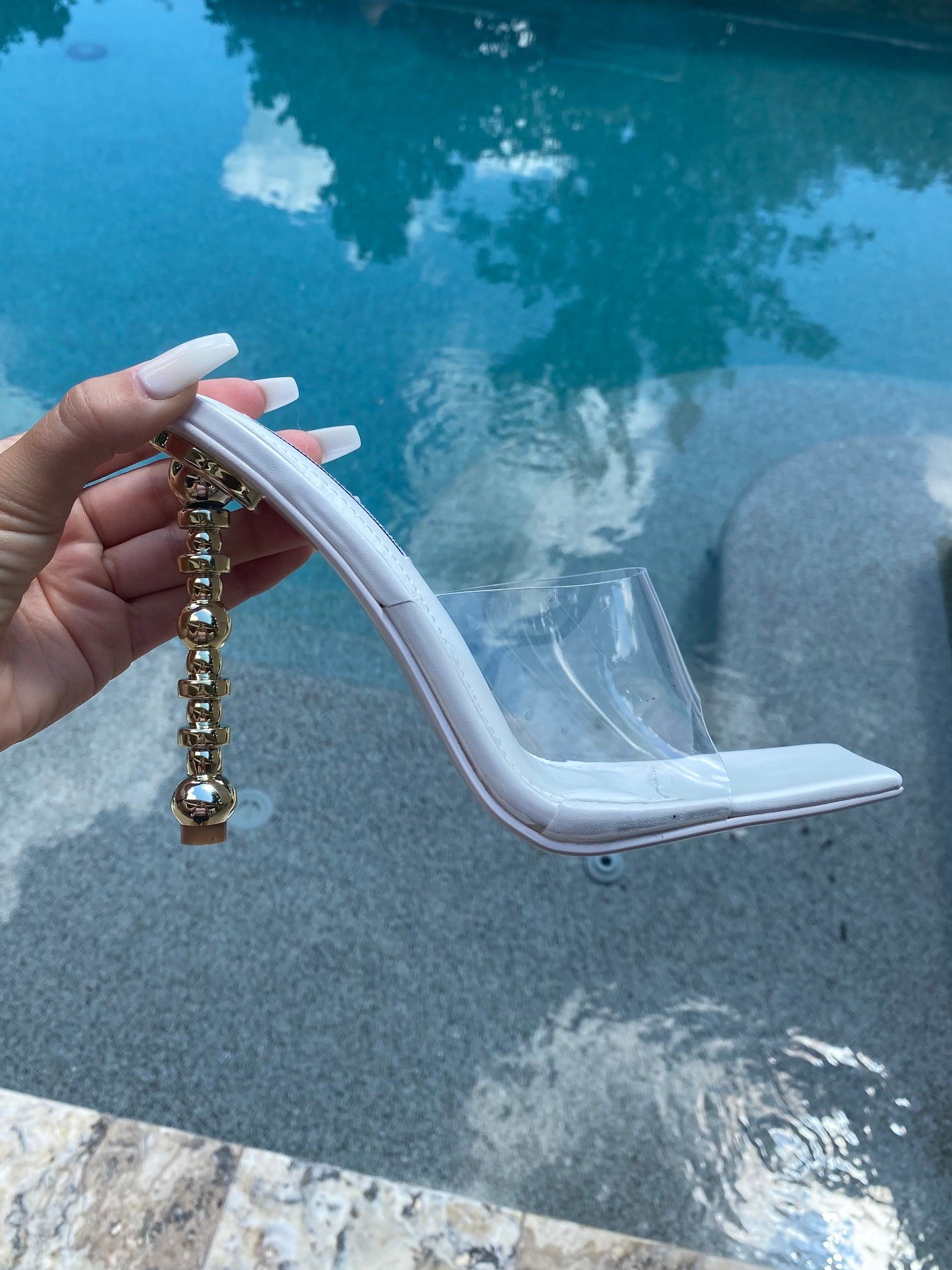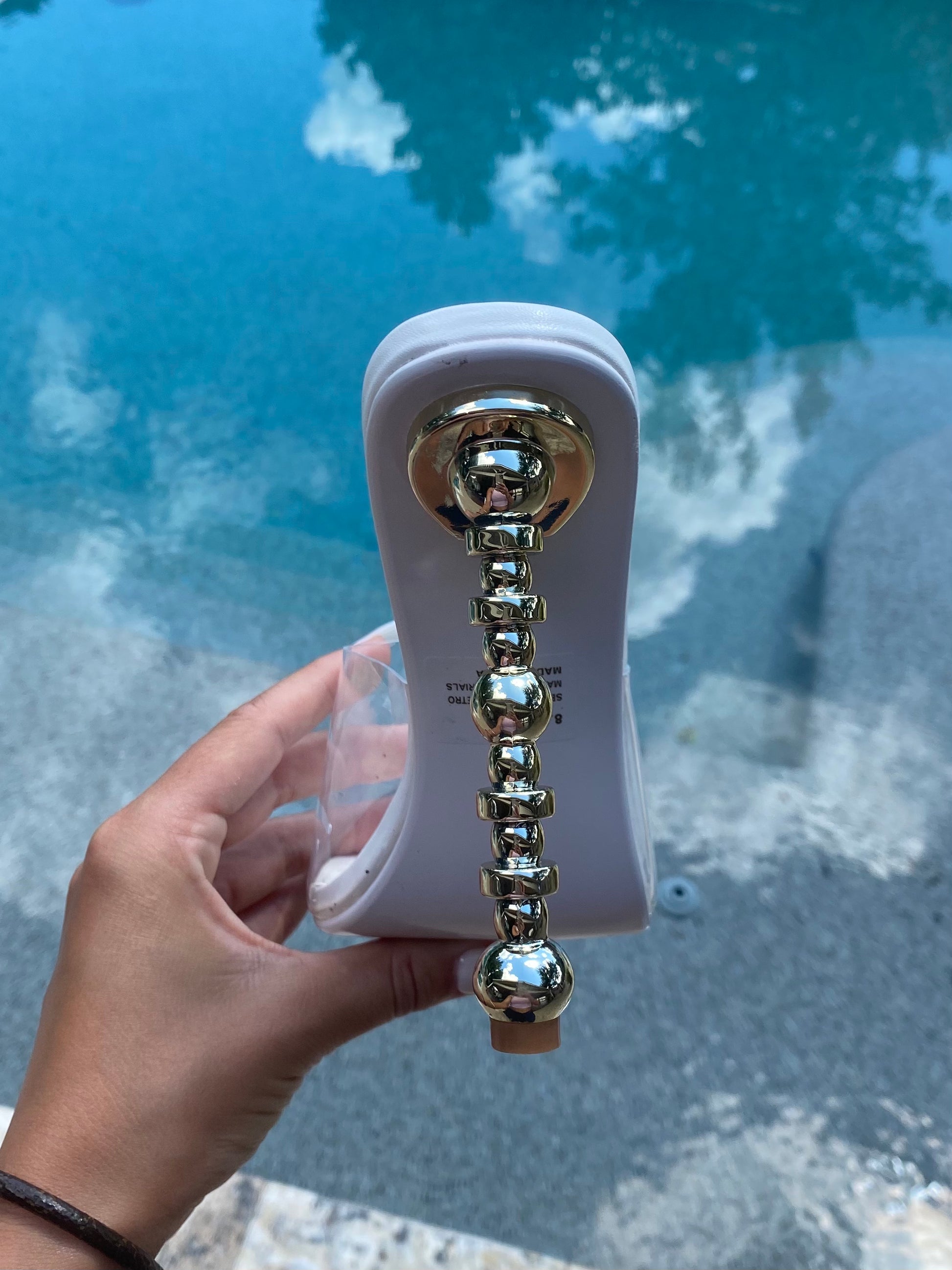 Top off your summer fit with these gorgeous gold and white heels! Run true to size