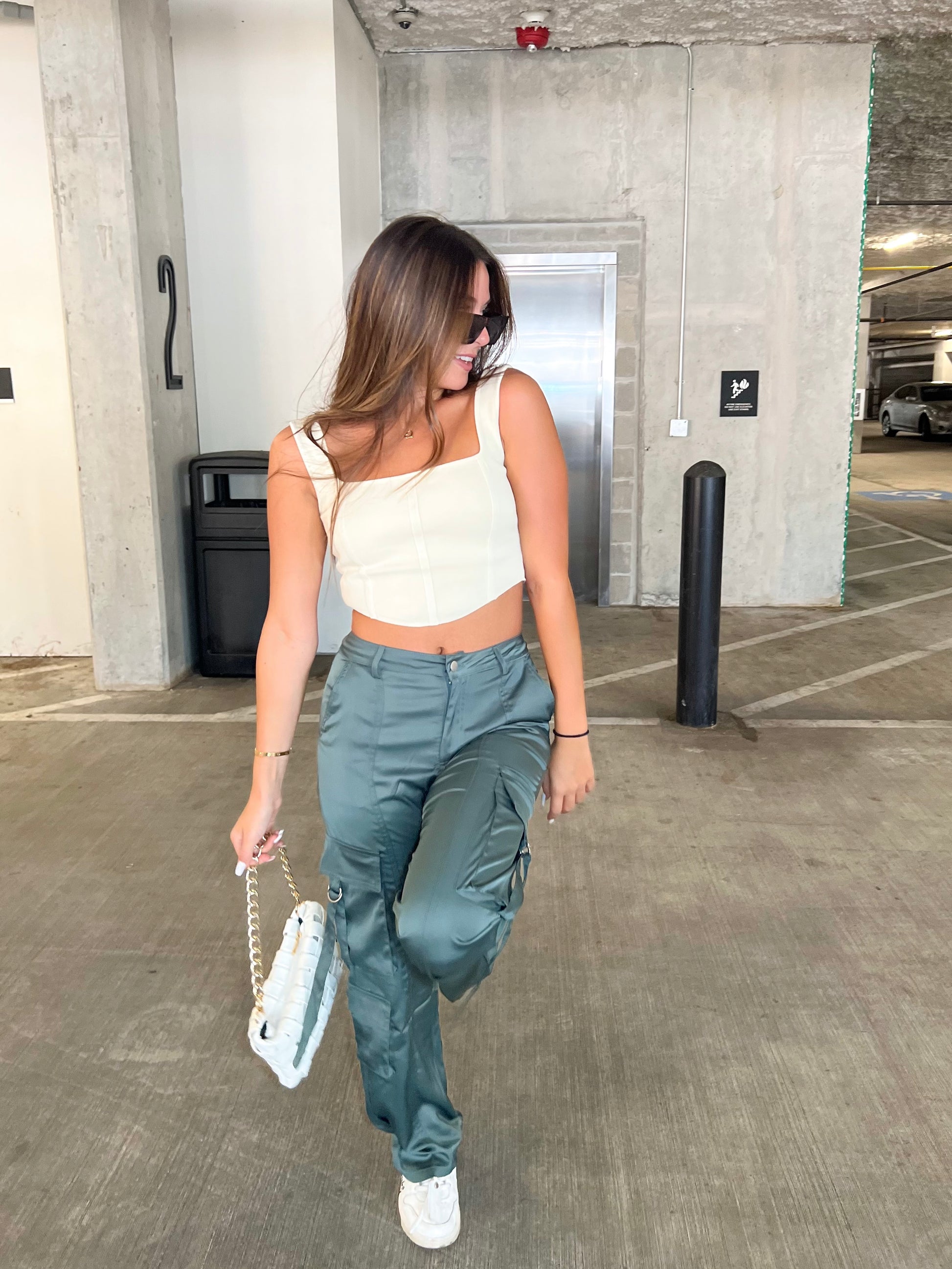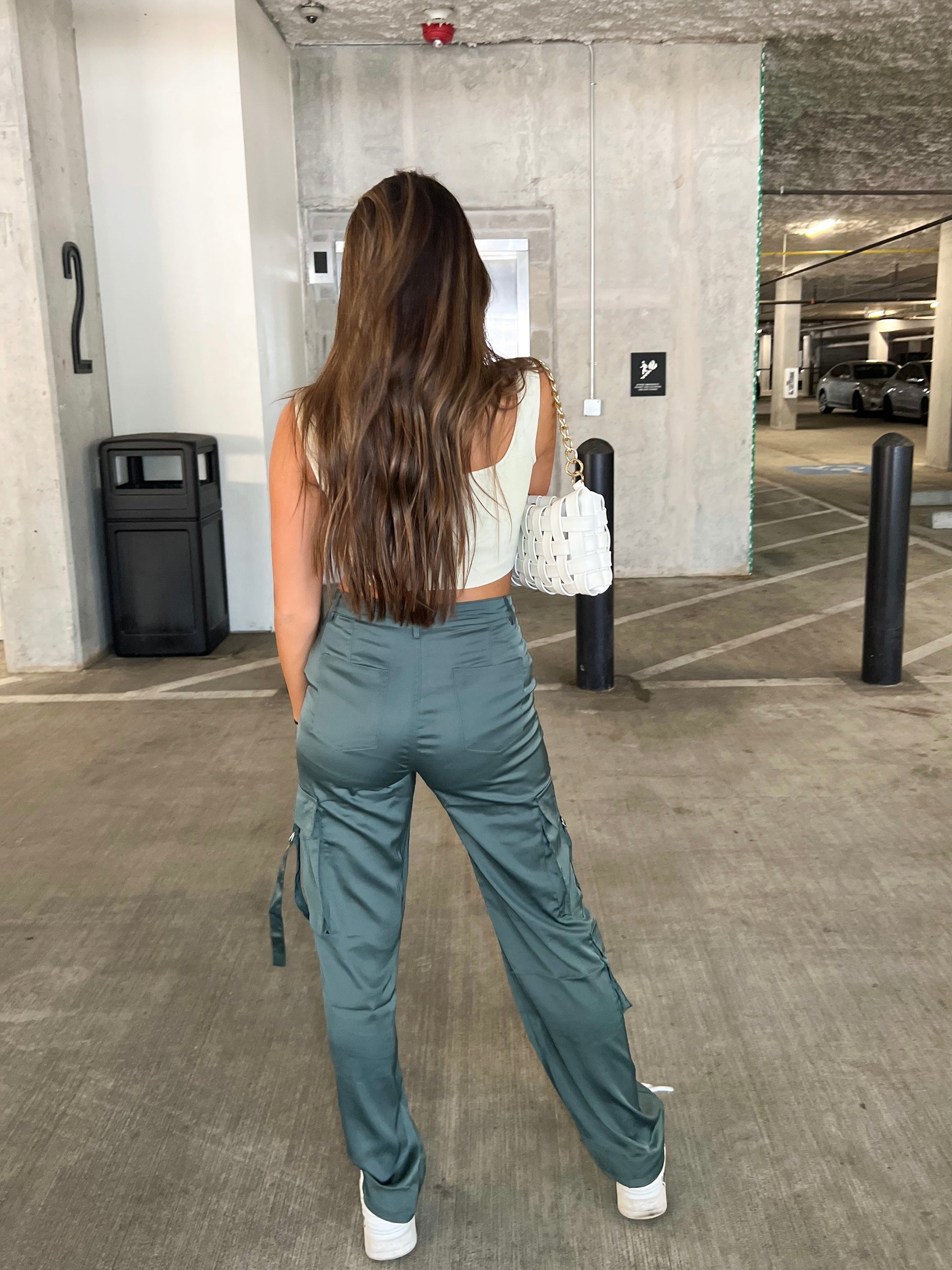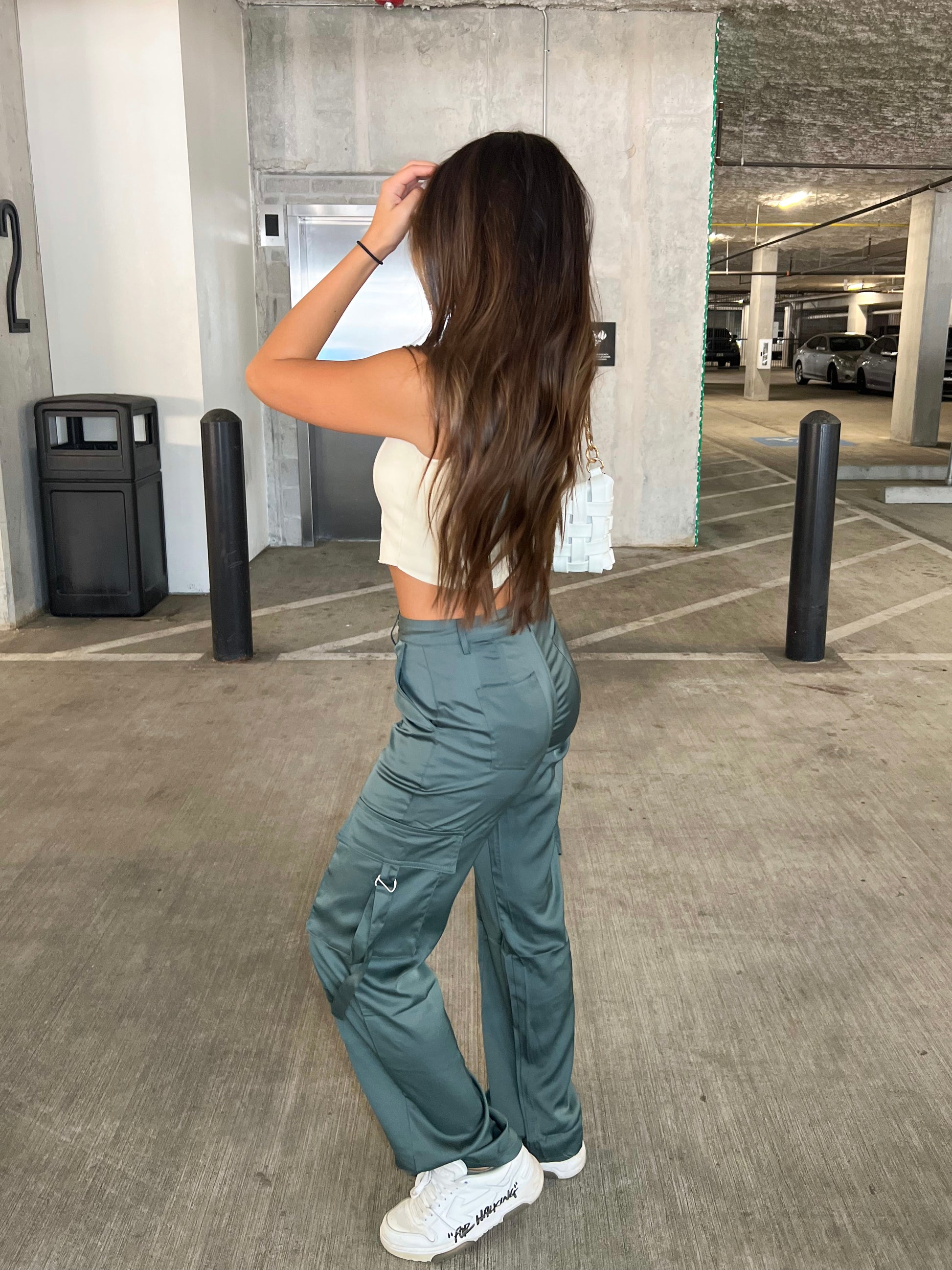 Cargos are back and THIS is the pair to start your new obsession! The perfect material to dress up with heels, or throw on some sneakers for a casual cool girl look.