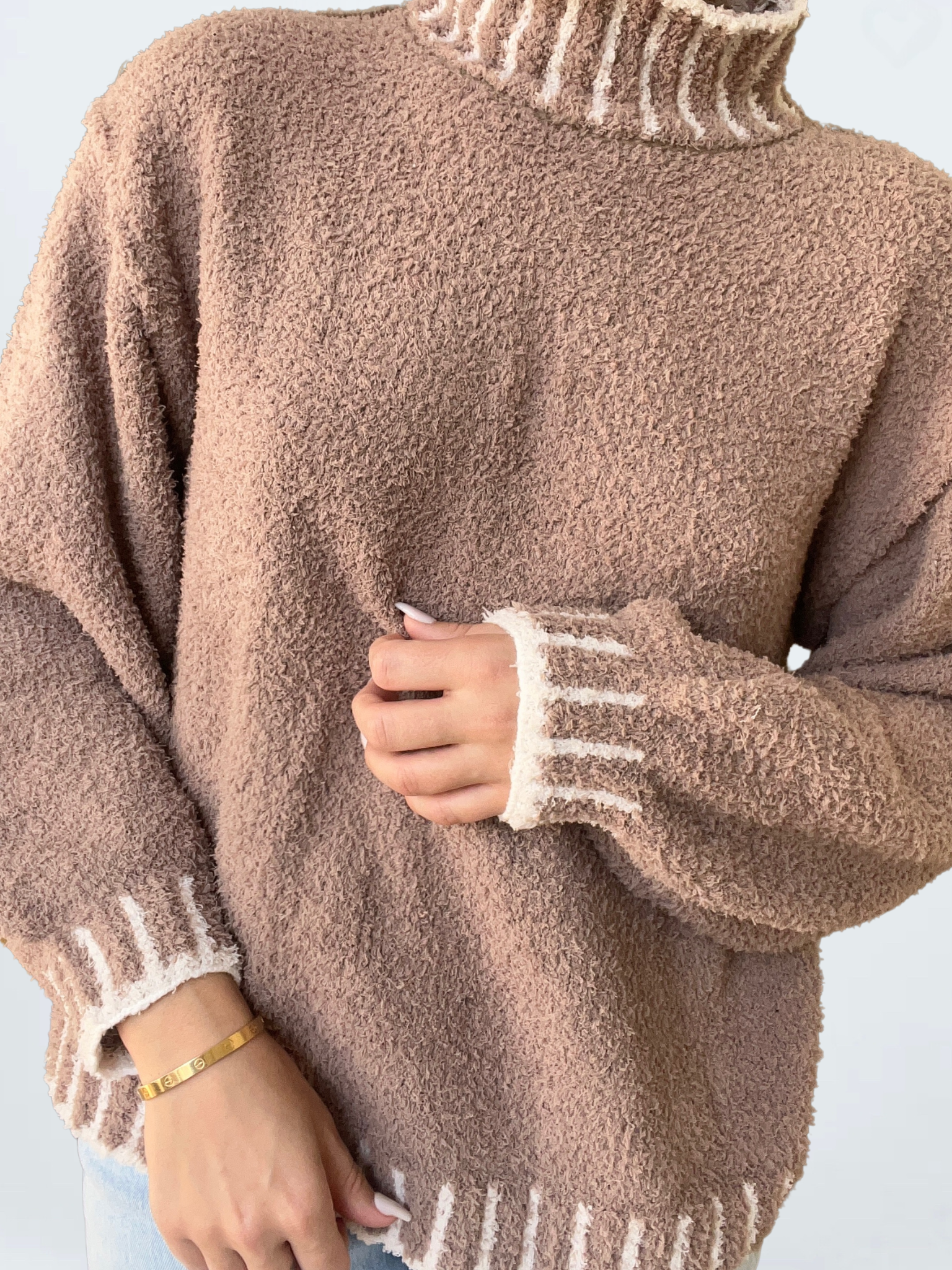 Stay cozy while still looking fab! You will not want to take our Mocha sweater off this season.