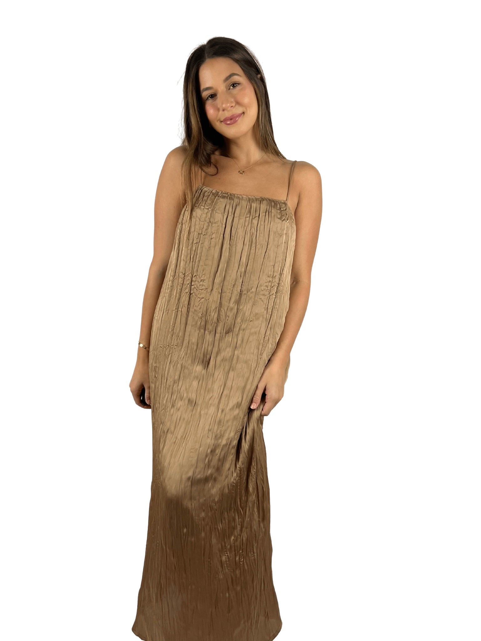 A perfect wedding guest dress. Neutral and elegant so you can wear it multiple times! Also pair it with some sneakers for a casual and cute day look!