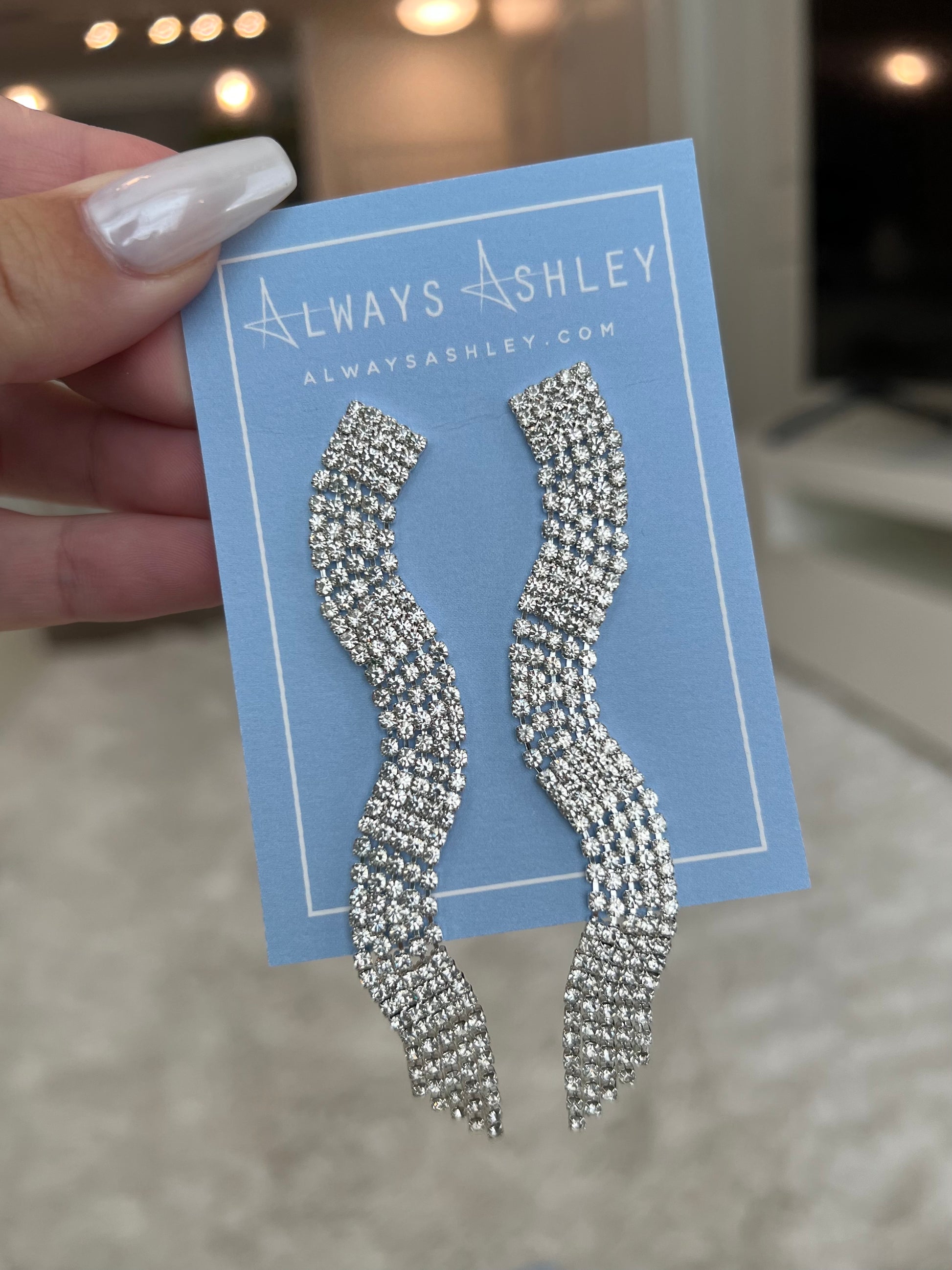 Add some fun to the basic rhinestone earrings with this wavy design. Perfect way to glam up a simple outfit!